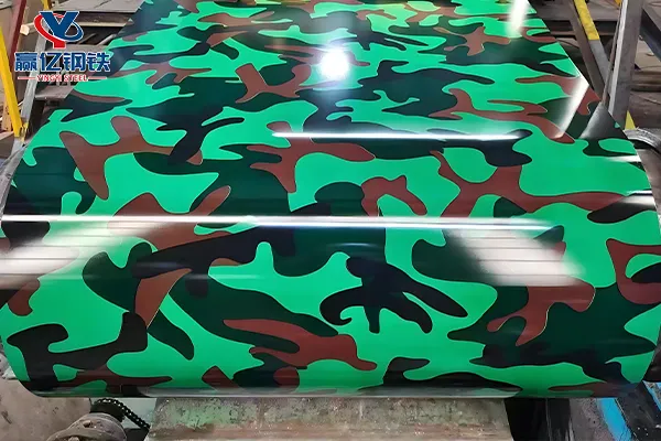 Color military printed metal coils feature camouflage-style finishes with durable corrosion protection for construction and outdoor applications.