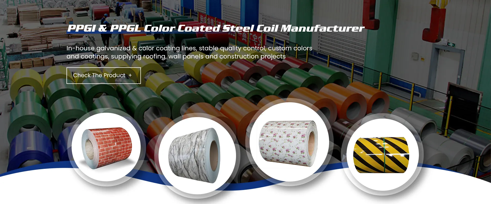 Our factory is equipped with in-house galvanizing and color-coating production lines, enabling stable output, consistent quality control and flexible customization for PPGI and PPGL coils serving global construction markets.