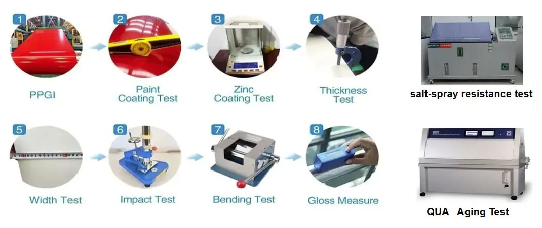 Our production process integrates steel substrate selection, galvanizing or galvalume coating, surface pretreatment, precision color coating and strict quality inspection, ensuring stable coating performance and consistent product quality for construction and industrial applications.